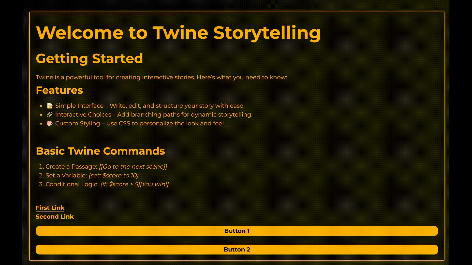 I wish I had something like this when I first found Twine... I hope you find it useful—happy writing! ✍️